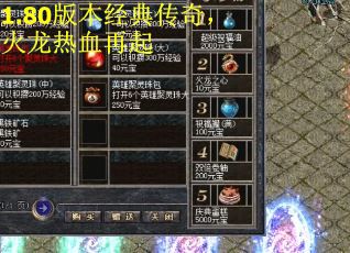 传奇,作为一个经典而又老牌的游戏,在不断迭代的过程中依旧受到了许多玩家的欢迎和喜爱。而1.80版本的出现,更是让传奇玩家们开始怀念那个曾经的经典荣光。这个版本中,最令人回味无穷的,莫过于火龙热血再起。